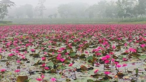 কালচে পানির ওপর লাল শাপলা রাজ্য