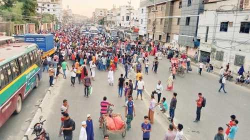 শ্রমিক আন্দোলনে ঢাকা-ময়মনসিংহ মহাসড়কে দীর্ঘ যানজট