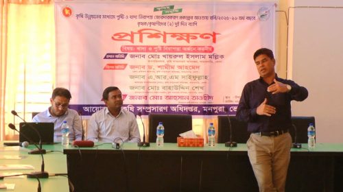 প্রশিক্ষনে খাদ্য ও পুষ্টি নিরাপত্তা অর্জনে করনীয় বিষয়ে ওয়ার্ড পর্যায়ের কৃষক-কৃষানীদেরকে দিক নির্দেশনা দেয়া হয়। দুই দিন ব্যাপী প্রশিক্ষনের আজ প্রথম দিন অনুষ্ঠিত হয়। আগামীকাল প্রশিক্ষনের দ্বিতীয় সেশন একই স্থানে অনুষ্ঠিত হবে।