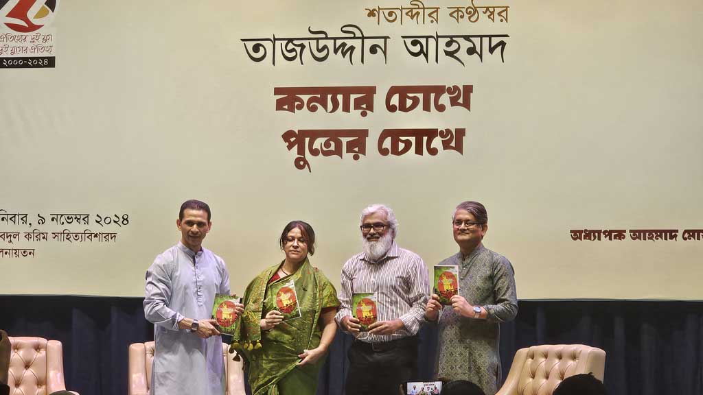 ঐতিহ্য প্রকাশনীর আয়োজনে কথাসাহিত্যিক অধ্যাপক আহমাদ মোস্তফা কামালের সঞ্চালনায় ‘শতাব্দীর কণ্ঠস্বর তাজউদ্দীন আহমদ: কন্যার চোখে, পুত্রের চোখে’ শীর্ষক এক আলোচনায় যোগ দিয়েছিলেন বঙ্গতাজ পুত্র।