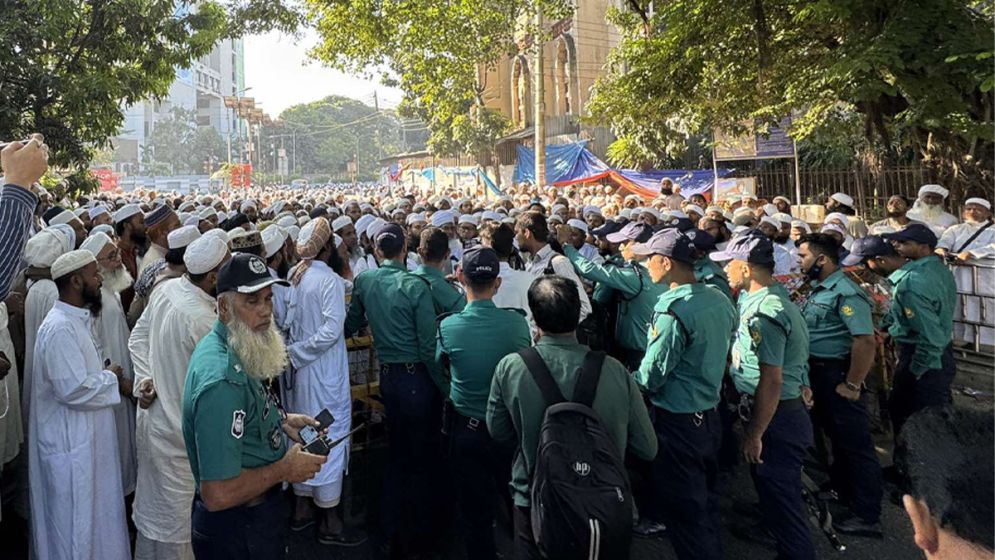 কাকরাইল মসজিদের সামনের সড়কে সাদপন্থিদের অবস্থান