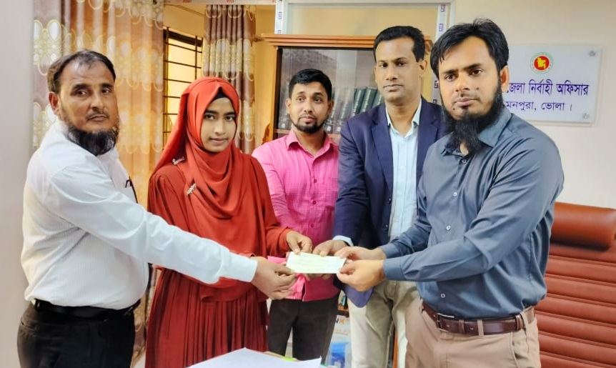 ফৈজুদ্দিন মাধ্যমিক বিদ্যালয়ের দুই শিক্ষার্থীর সঞ্চয় স্কিমের মেয়াদ ও ১৮ বছর বয়স পূর্ণ হওয়ায় তাদের হাতে দ্বিগুন পরিমান টাকার নগদ চেক তুলে দেয়া হয়।
