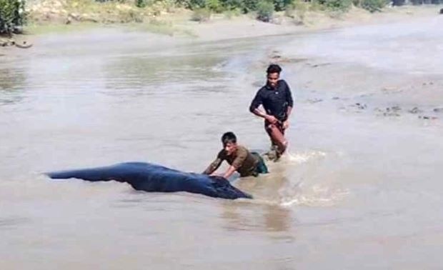 নোয়াখালীর দ্বীপ উপজেলা হাতিয়ায় মেঘনা নদীতে জোয়ারের পানিতে ভেসে এসেছে বিশালাকৃতির একটি তিমি। বৃহস্পতিবার (৫ ডিসেম্বর) দুপুরের দিকে উপজেলার কাঠালিয়া এলাকার মেঘনা নদীতে তিমিটি অবমুক্ত করা হয়। এর আগে, একই দিন সকালে উপজেলার চর আতাউরের ডুবোচরে তিমিটি দেখতে পায় স্থানীয় লোকজন। ওই সময় চরে বিশাল তিমি ভেসে আসার খবরে দেখতে ভিড় জমান সাধারণ লোকজন।