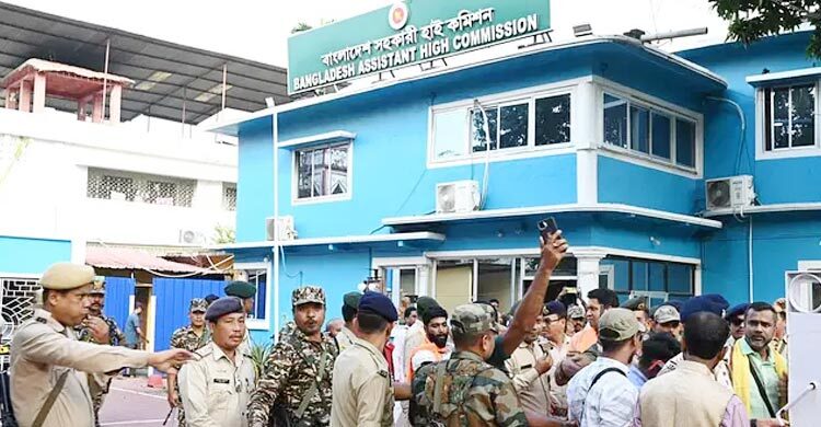 বাংলাদেশে সংখ্যালঘু নির্যাতনের অভিযোগ তুলে সোমবার ভারতের হিন্দুত্ববাদী সংগঠন হিন্দু সংঘর্ষ সমিতিসহ কয়েকটি সংগঠনের সমর্থকেরা আগরতলায় বাংলাদেশ সহকারী হাইকমিশনে হামলা চালায়। তারা বাংলাদেশের জাতীয় পতাকার অবমাননা করে এবং মিশন প্রাঙ্গণে ভাঙচুর করে। এ হামলার এক দিন পর নিরাপত্তাহীনতার কারণে পরবর্তী নির্দেশনা না দেওয়া পর্যন্ত সেখানকার কার্যক্রম বন্ধ করে দিয়েছে বাংলাদেশ।