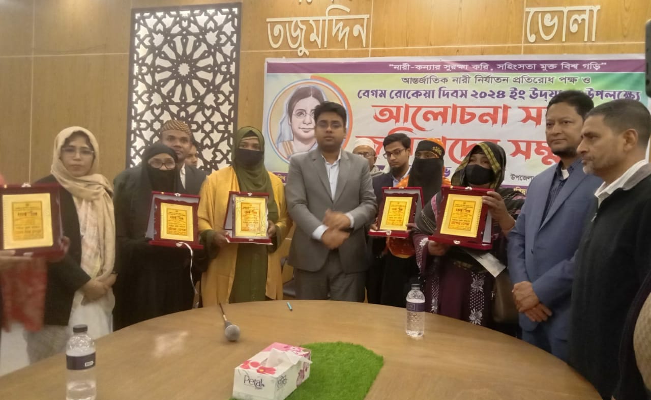 ভোলার তজুমদ্দিনে আন্তর্জাতিক নারী নির্যাতন প্রতিরোধ পক্ষ এবং বেগম রোকেয়া দিবস উদযাপন করা হয়েছে। এ উপলক্ষে কাট্যাগরী ভিত্তিতে ৫ জয়িতাকে সম্মাননা প্রদান করা হয়েছে।