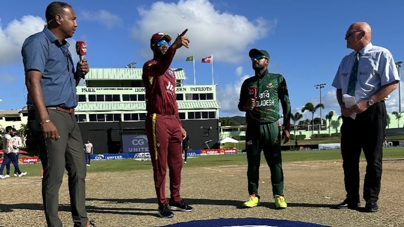 ওয়েস্ট ইন্ডিজের বিপক্ষে হার দিয়ে ওয়ানডে সিরিজ শুরু করেছে বাংলাদেশ দল। ঘুরে দাঁড়ানোর লড়াইয়ে দ্বিতীয় ম্যাচে টস হেরে শুরুতে ব্যাটিং করবে বাংলাদেশ।