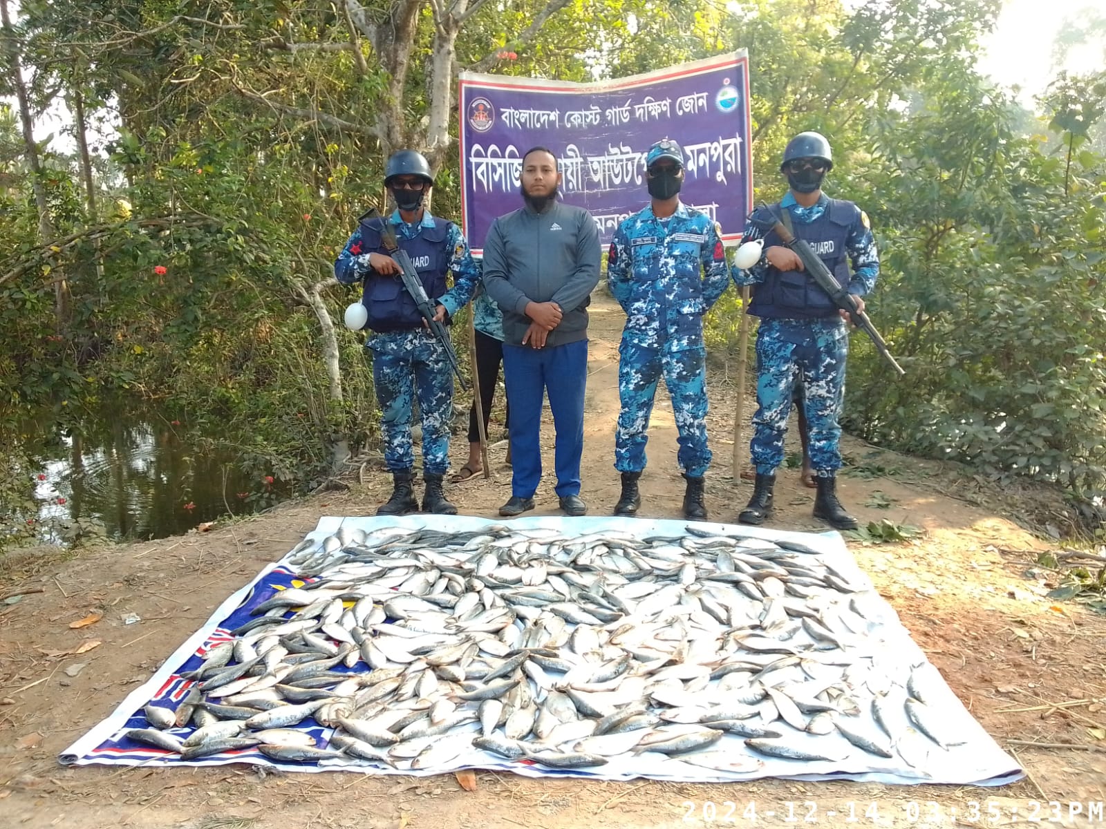 দেশের জাতীয় সম্পদ রক্ষার্থে সরকারের সিদ্ধান্ত বাস্তবায়নের লক্ষ্যে বাংলাদেশ কোস্ট গার্ড মনপুরা উপজেলা অভিযান চালিয়ে ৩৮০ কেজি জাটকা জব্দ করেছে।