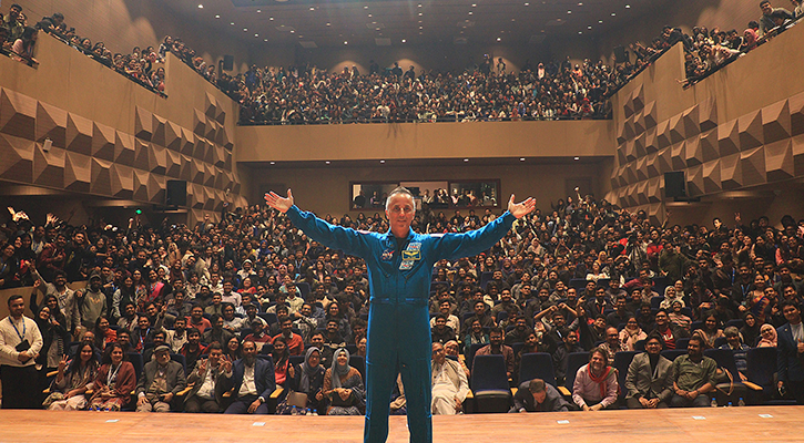 রোববার (১৫ ডিসেম্বর) ‘ফ্রম আর্থ টু অরবিট: অ্যান অ্যাস্ট্রোনাটস টেল’ শীর্ষক অনুষ্ঠানে অসীম শূন্যতায় তার কাটানো সময়ের গল্প ও চ্যালেঞ্জগুলো তুলে ধরেন নাসার এই নভোচারী।