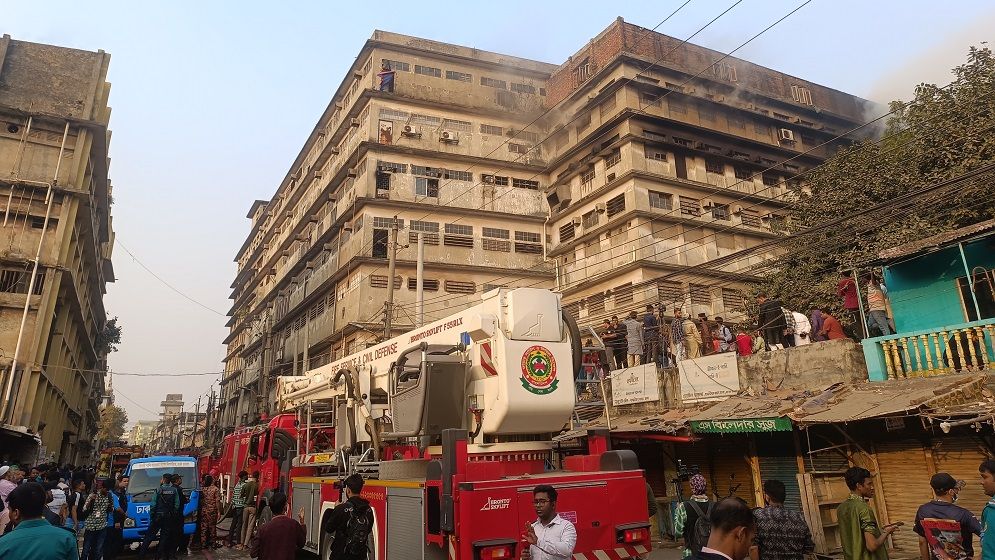 ঢাকা ফায়ার সার্ভিসের উপপরিচালক মো. সালেহ উদ্দিন আহমেদ যুগান্তরকে জানান, সাততলা ভবনের পঞ্চমতলার একটি গোডাউন থেকে আগুনের সূত্রপাত ঘটে। তবে আগুন লাগার কারণ ও হতাহতের বিষয়ে এখনো নিশ্চিত কোনো তথ্য পাওয়া যায়নি।