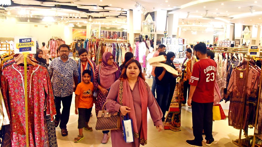 যমুনা ফিউচার পার্কে আড়ংয়ের আউটলেটে গিয়ে দেখা যায়, প্রচুর মানুষের সমাগম হয়েছে সেখানে। ছেলেদের ঈদের প্রধান আকর্ষণ পাঞ্জাবি। আড়ংয়ে এবার সুতি, সিল্ক মিলিয়ে বাহারি সব পাঞ্জাবি এসেছে। ১ হাজার ৫০০ থেকে ৮ হাজার টাকায় পাঞ্জাবি পাওয়া যাচ্ছে এখানে। মেয়েদের শাড়ি, সালোয়ার কামিজ ঘিরেই আগ্রহ সবার। আছে শিশুদের বাহারি সব পোশাকও।