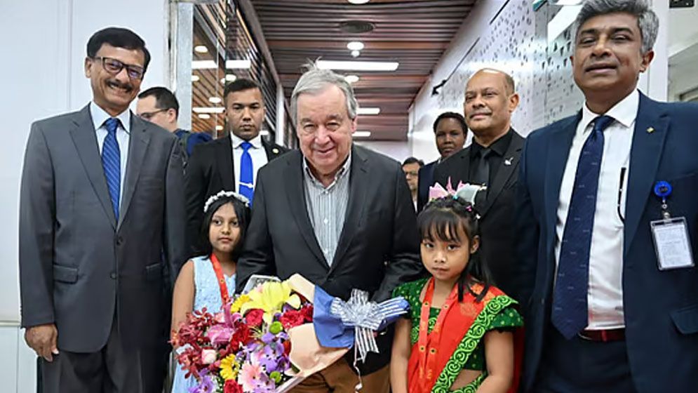 জাতিসংঘ মহাসচিব অ্যান্তোনিও গুতেরেস ৪ দিনের সফরে বৃহস্পতিবার ঢাকায় পৌঁছেছেন। পররাষ্ট্র উপদেষ্টা মো. তৌহিদ হোসেন হযরত শাহজালাল (রহ.) আন্তর্জাতিক বিমানবন্দরে তাকে স্বাগত জানান।