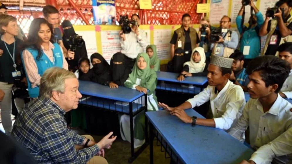 জাতিসংঘ মহাসচিব গুতেরেস বিমানবন্দর থেকে সরাসরি উখিয়ায় যান। সেখানে তিনি রোহিঙ্গা লার্নিং সেন্টার, রোহিঙ্গাদের সাংস্কৃতিক কেন্দ্র ও পাটজাত পণ্যের উৎপাদন কেন্দ্র পরিদর্শন করছেন।