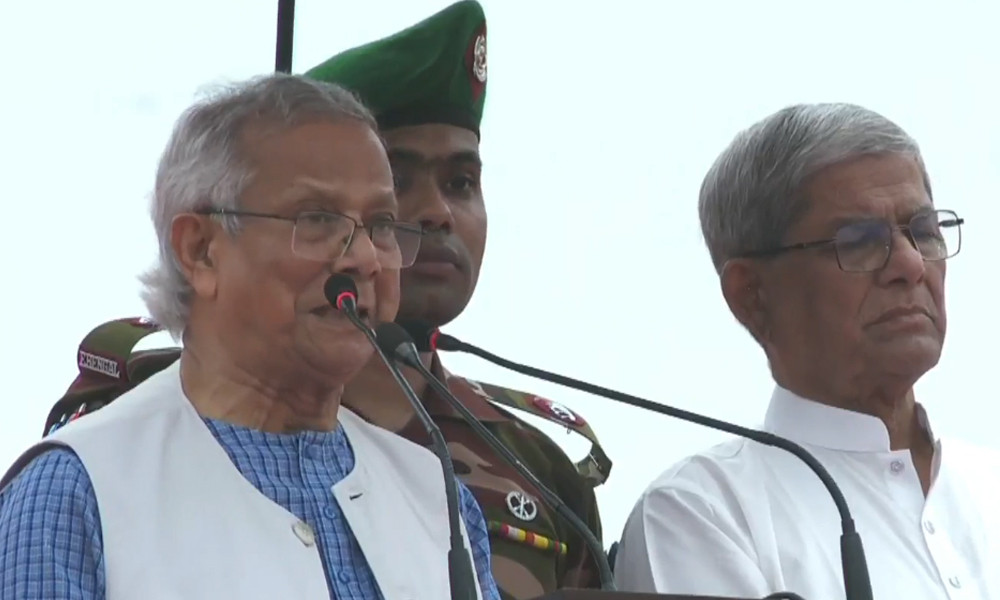 প্রধান উপদেষ্টা ‘জুলাই ঘোষণাপত্র’ পাঠে বলেন, যেহেতু উপনিবেশবিরোধী লড়াইয়ের সুদীর্ঘকালের ধারাবাহিকতায় এই ভূখণ্ডের মানুষ দীর্ঘ ২৩ বছর পাকিস্তানের স্বৈরশাসকদের বঞ্চনা ও শোষণের বিরুদ্ধে রুখে দাঁড়িয়েছিল এবং নির্বিচার গণহত্যার বিরুদ্ধে গণপ্রতিরোধ গড়ে ১৯৭১ সালের ২৬ মার্চ স্বাধীনতা ঘোষণা করে জাতীয় মুক্তির লক্ষ্যে রক্তক্ষয়ী মুক্তিযুদ্ধের মাধ্যমে বাংলাদেশ রাষ্ট্র প্রতিষ্ঠা করেছিল; এবং