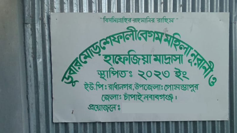 শুক্রবার দিবাগত রাতে উপজেলার রাধানগর ইউনিয়নে ডোবার মোড় এলাকার শেফালী বেগম মহিলা হাফিজিয়া মাদ্রাসায় এ ঘটনা ঘটে।