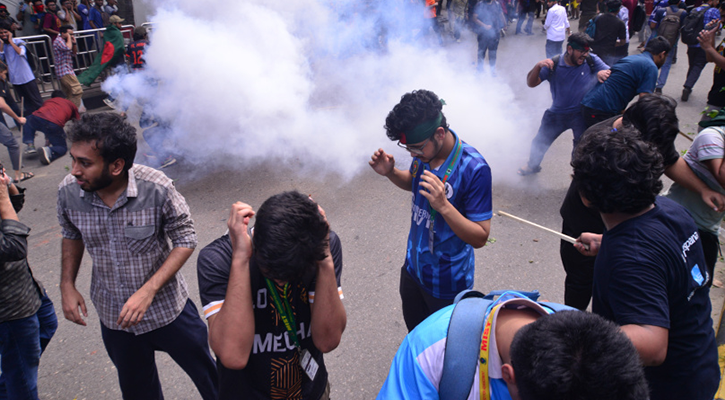 পুলিশ শিক্ষার্থীদের ছত্রভঙ্গ করতে টিয়ার শেল ও সাউন্ড গ্রেনেড নিক্ষেপ করে।
