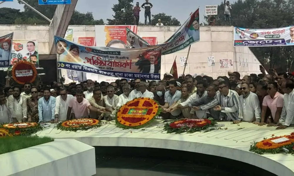 দলের প্রতিষ্ঠাবার্ষিকীতে বাংলাদেশ জাতীয়তাবাদী দল বিএনপির প্রতিষ্ঠাতা শহীদ প্রেসিডেন্ট জিয়াউর রহমানের সমাধিস্থলে শ্রদ্ধা নিবেদন করেছেন নেতাকর্মীরা। সোমবার (১ সেপ্টেম্বর) সকাল ১১টায় শেরেবাংলা নগরে জিয়াউর রহমানের সমাধিস্থলে পুষ্পমাল্য অর্পণ করেন দলটির মহাসচিব মির্জা ফখরুল ইসলাম আলমগীরের নেতৃত্বে নেতকর্মীরা।