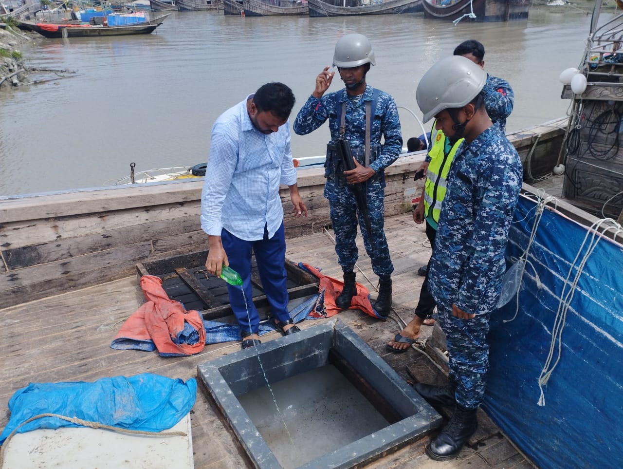 গোপন সংবাদের ভিত্তিতে জেলা মৎস্য কর্মকর্তা মোঃ ইকবাল হোসেনের নের্তৃত্বে নবনিযুক্ত উপজেলা মৎস্য কর্মকর্তা উজ্জ্বল বনিক’র তত্ত্বাবধানে নৌ বাহিনী, কোস্টগার্ড ও পুলিশের একটি চৌখস টিম এ অভিযান পরিচালনা করেন।